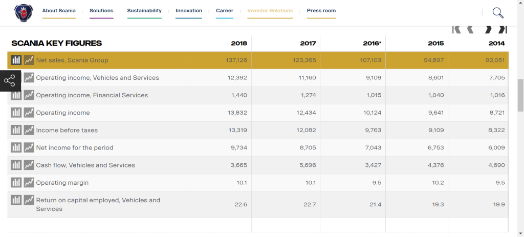 Finding the annual reports for Scania was quite simple. From the home page, investor relations and there was a link to all annual/sustainability reports.