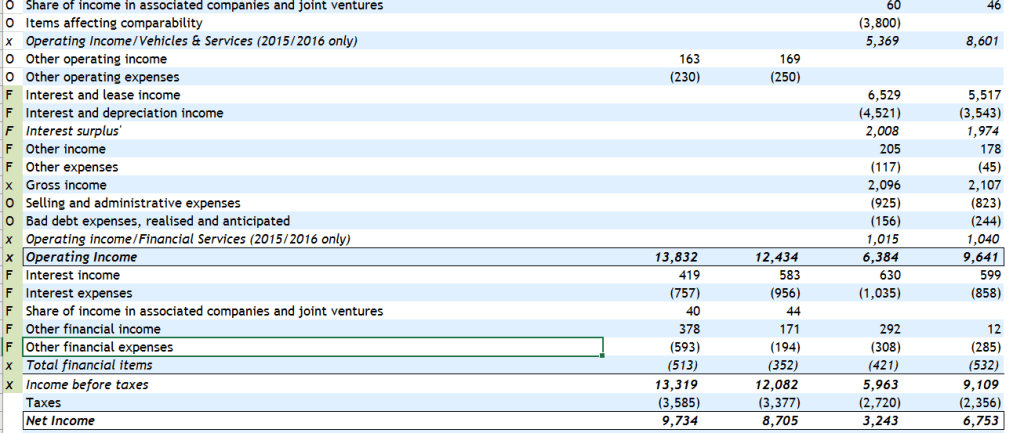 The items following Operating income heading to the total financial heading i have marked all as financial, because the total financial includes all this items. Would you assume the same? And the section above that also has me stumped 😦